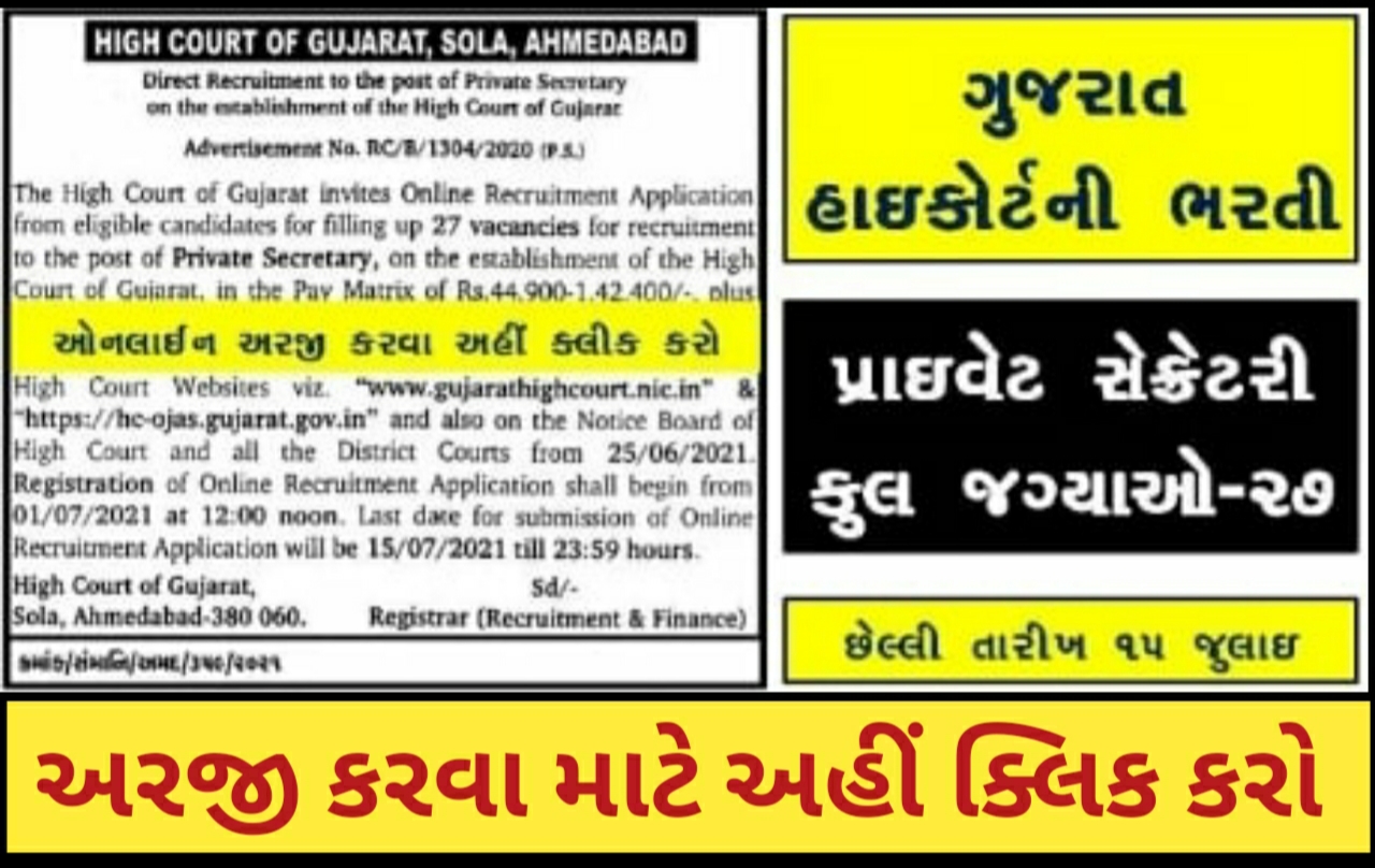 The Gujarat Supreme Court invites an ‘Online Application’ from eligible candidates to complete the Private Secretary by post 2021 You can find below other details such as age limits, qualifications, selection process, application fee and how to apply. Keep checking Ojas Adda regularly for this the latest updates.