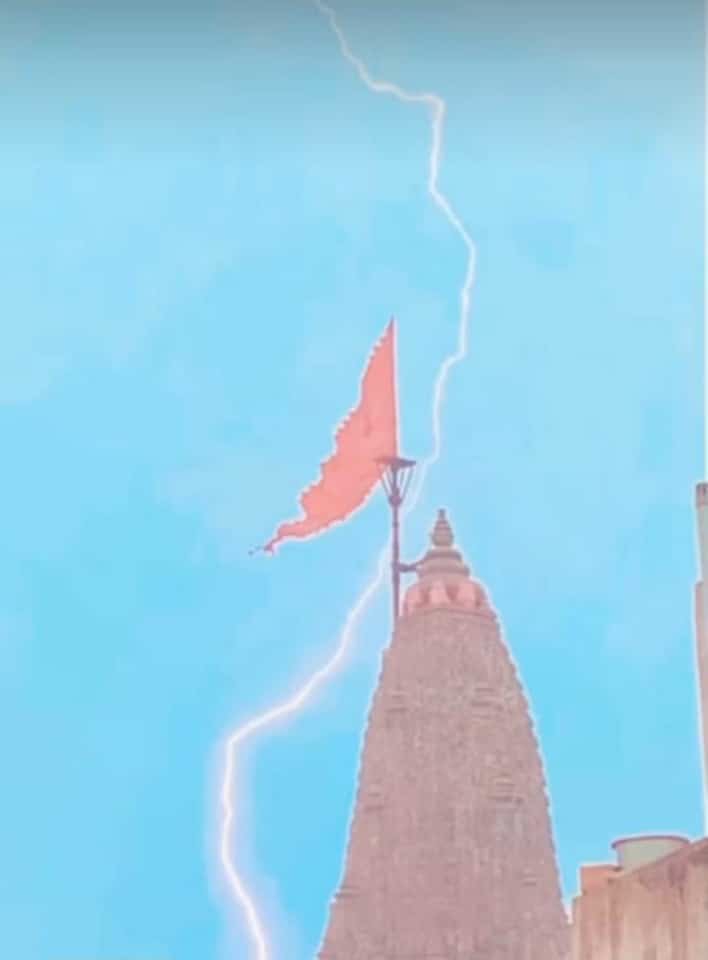 The flag of the temple was shattered due to the lightning that fell on the peak of Dwarkadhish temple. The video has recently gone viral on social media.